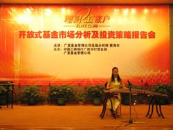 2004年6月30日晚,广西南宁市四星级酒店明园新都多功能厅内座无虚席,宽大的投影屏幕上,滚动播放着工商银行“理财金账户”、个人网上银行“金融@家”,以及正在由工行代销的广发稳健增长基金等宣传片。伴随着悠扬的古筝和小提琴乐曲,工商银行广西分行营业部举办“理财金账户”财富阶梯系列理财沙龙活动第一期——“开放式基金市场分析及投资策略报告会”拉开了帷幕。